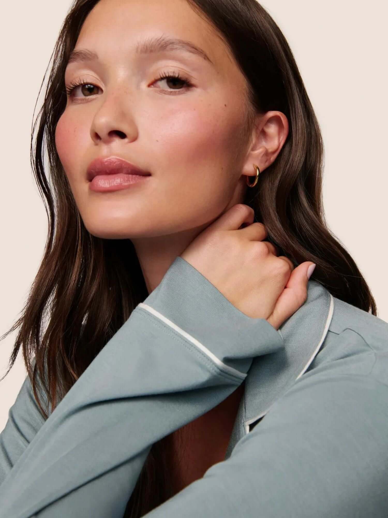 Gisele Long PJ Set in Stone Blue/Ivory