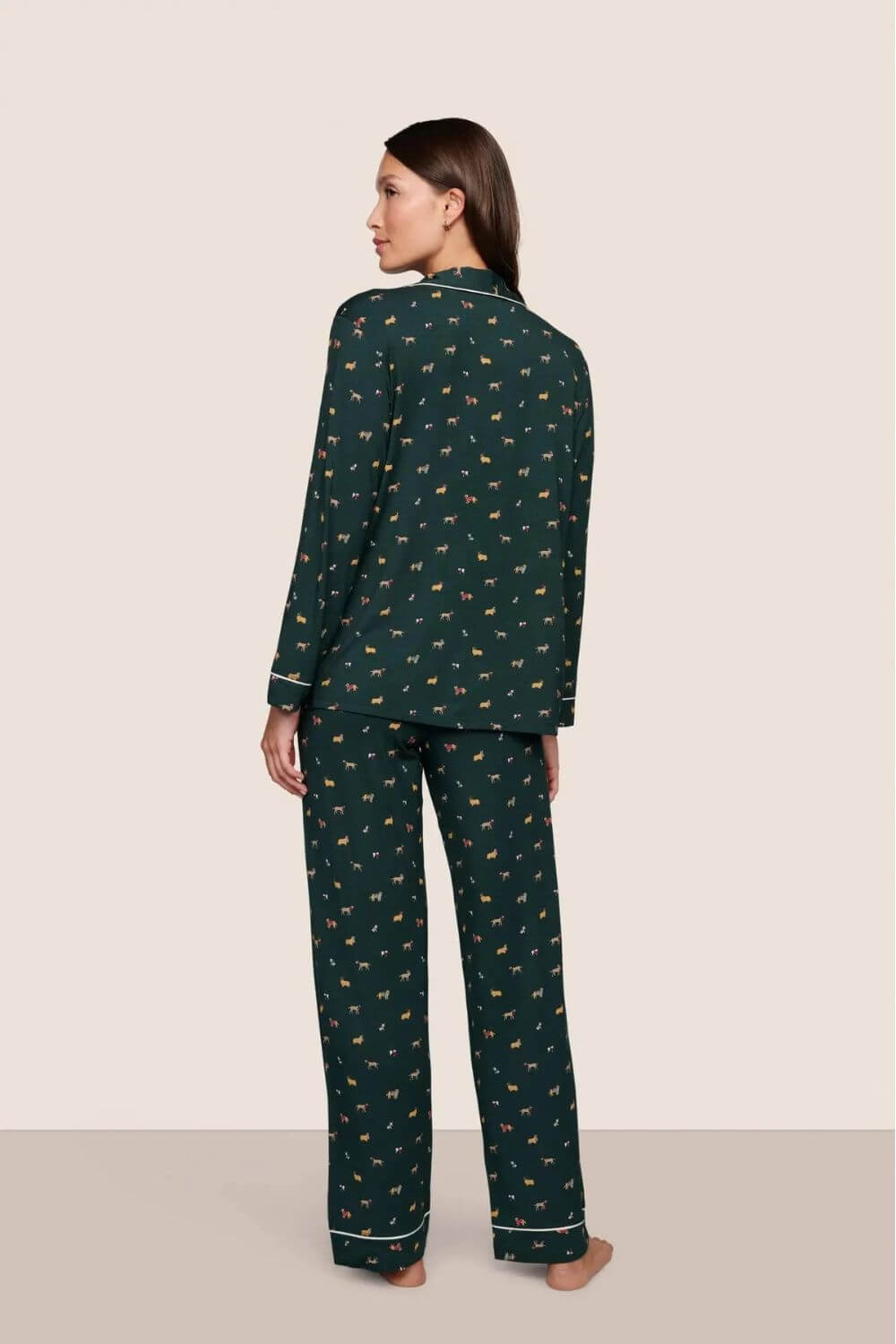 Gisele Printed Long PJ Set in Holiday Dogs Pine/Ivory
