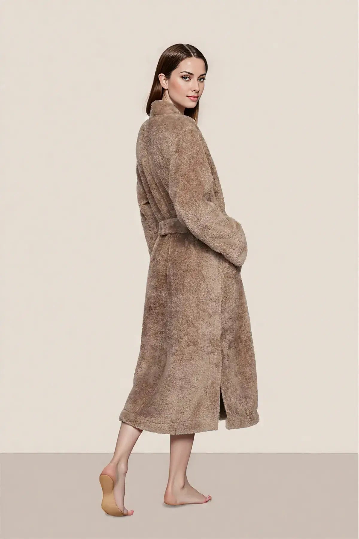 Renew Plush Long Robe in Toffee
