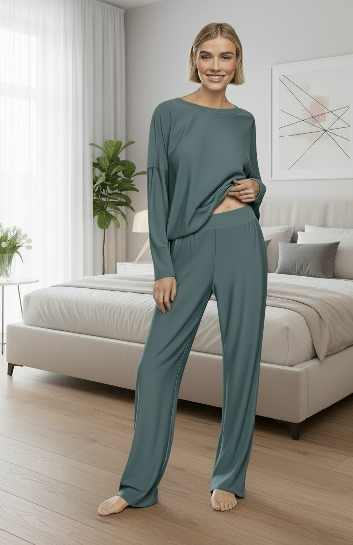 Gisele Long PJ Set in Pine/Ivory