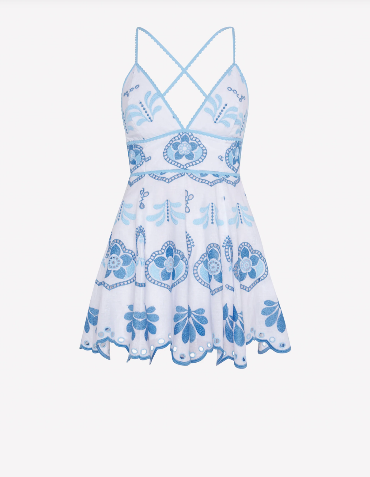 Button Down Short Dress with Open Back in Adorned in Aranjuez