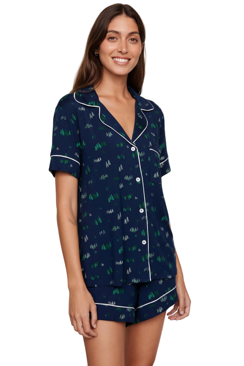 Gisele Printed Relaxed Short PJ Set in Forest Pine Navy/Ivory