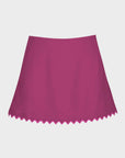 The Karla Colletto Amaya A-Line Skirt in Raspberry 432-C10 that unites sublime simplicity with a touch of whimsy, care of its rick rack hem.easy fit, sits low on the waist, length 13".
