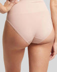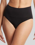 - French Brief style panty with a double layered 4-inch waistband that falls right below the natural waist for extra support; has full back coverage and high cut leg