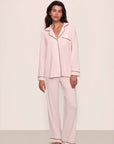 The Gisele Long PJ Set by Eberjey in Velvet Pink/Ivory is your go-to for luxury women’s sleepwear. Made from ultra-soft, OEKO-TEX® certified TENCEL™ Modal, this relaxed-fit set features a notch collar top and low-rise, straight-leg pants with elegant contrast piping.