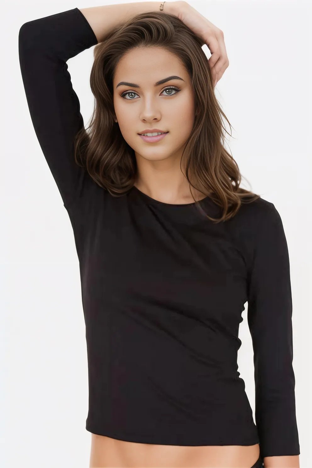 - 3/4 sleeves, round crewneck